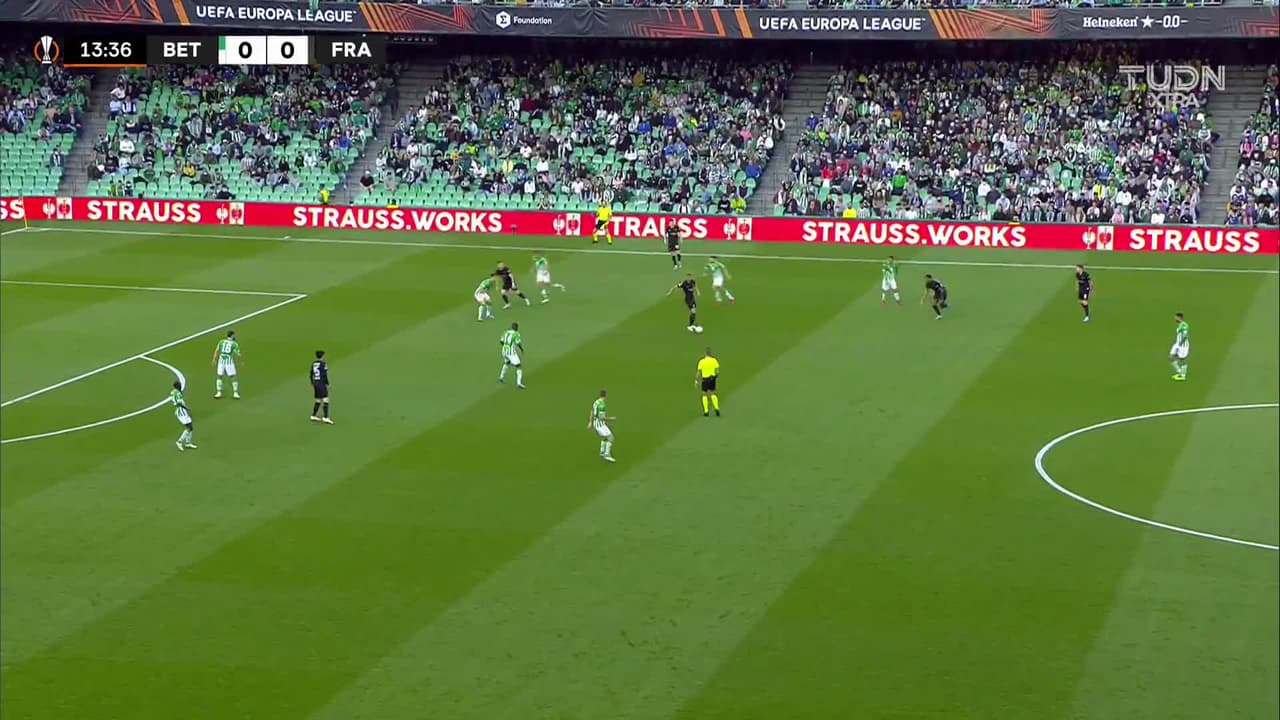 ¡Gol! Real Betis 0| Eintracht Frankfurt 1. Filip Kostic (Eintracht Frankfurt) zurdazo desde muy lejos por la izquierda y en posición complicada.