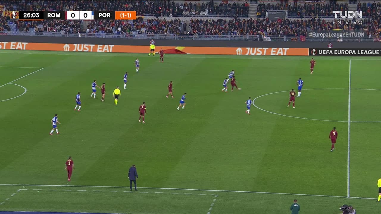 ¡Gol! AS Roma 0| FC Porto 1. Samu Aghehowa (FC Porto) Disparo con la derecha desde el centro del área.
