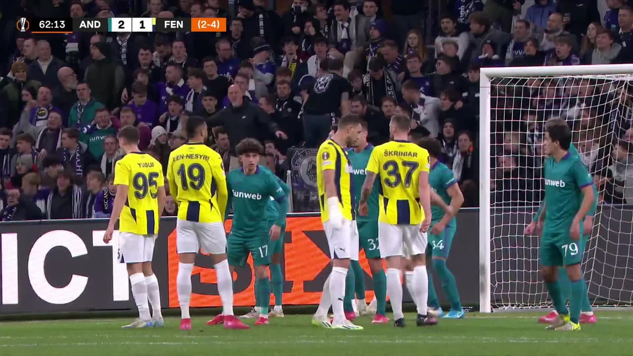¡Gol! RSC Anderlecht 2| Fenerbahçe 2. Yusuf Akçiçek (Fenerbahçe) disparo de cabeza a quemarropa desde el lado izquierdo tras un saque de esquina.
