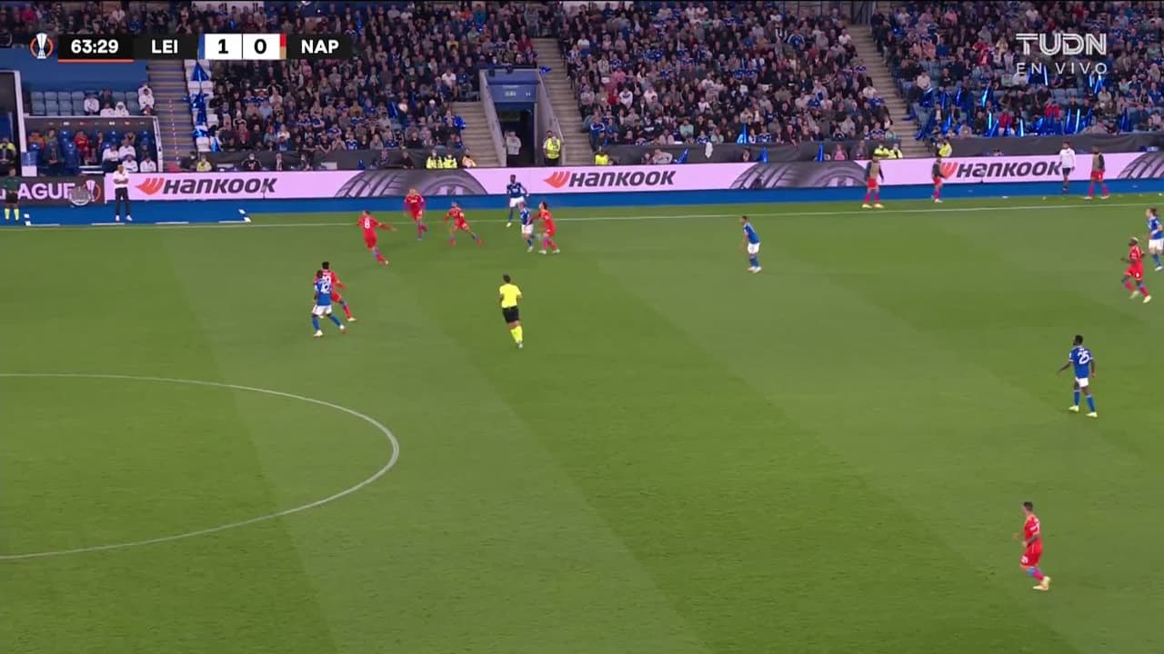 ¡Gooooool! Leicester City 2| Nápoles 0. Harvey Barnes (Leicester City) remate con la izquierda desde el centro del área.