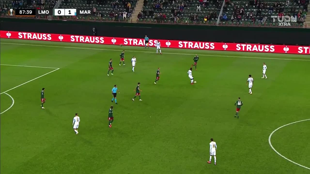 ¡Gooooool! Lokomotiv Moscú 1, Olympique de Marsella 1. Faustino Anjorin (Lokomotiv Moscú) remate con la derecha desde fuera del área.