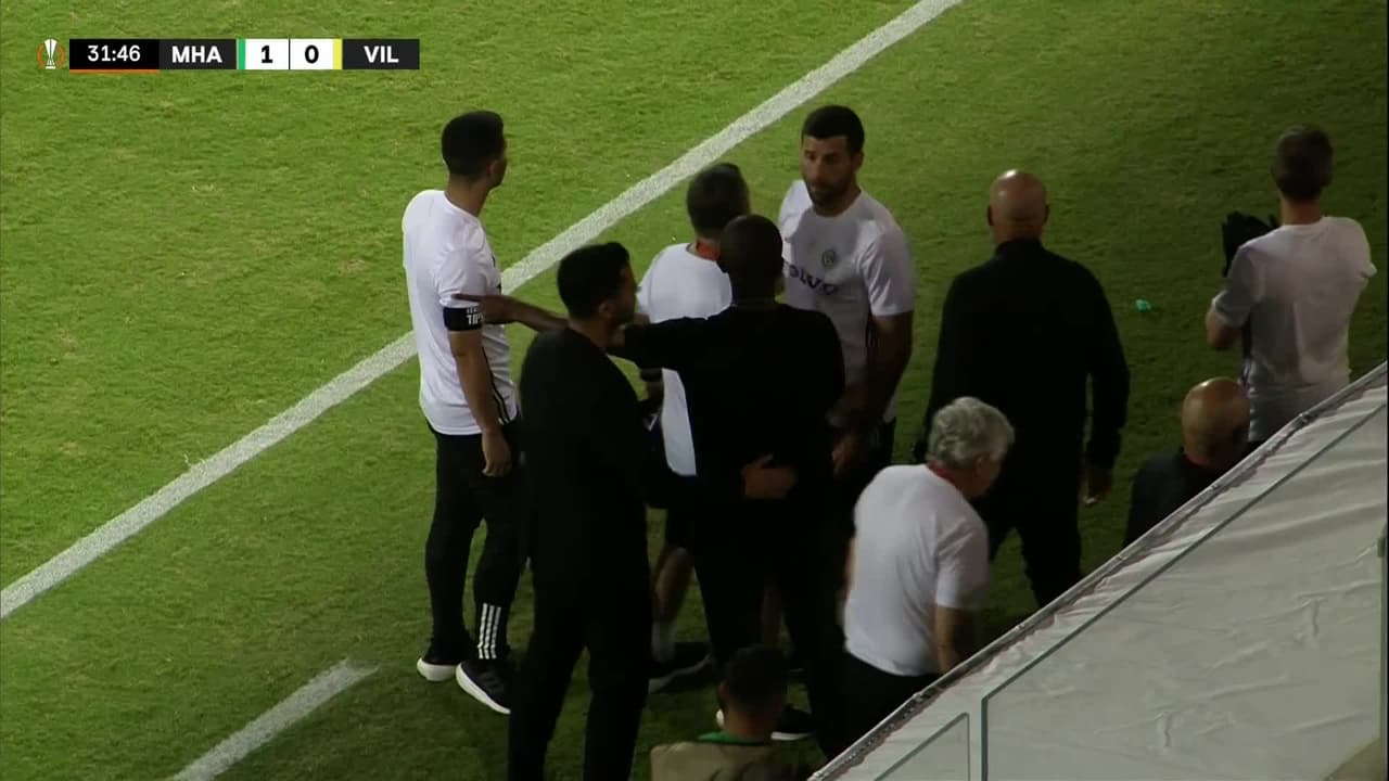 ¡Gol! Maccabi Haifa 1| Villarreal 0. Abdoulaye Seck (Maccabi Haifa) disparo de cabeza desde muy cerca tras el cobro de una falta.