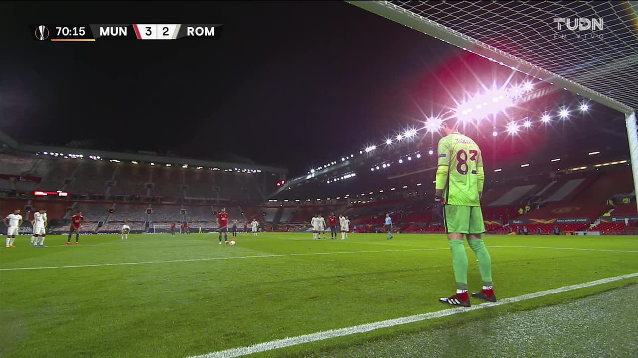 ¡Gol! Manchester United 4| AS Roma 2. Bruno Fernandes (Manchester United) convirtió el penalti Disparo con la derecha.