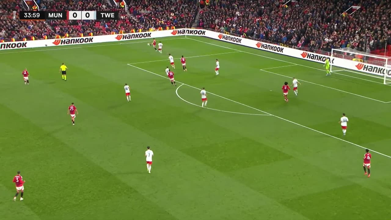 ¡Gol! Manchester United 1| FC Twente 0. Christian Eriksen (Manchester United) Disparo con la derecha desde el lado izquierdo dentro del área.