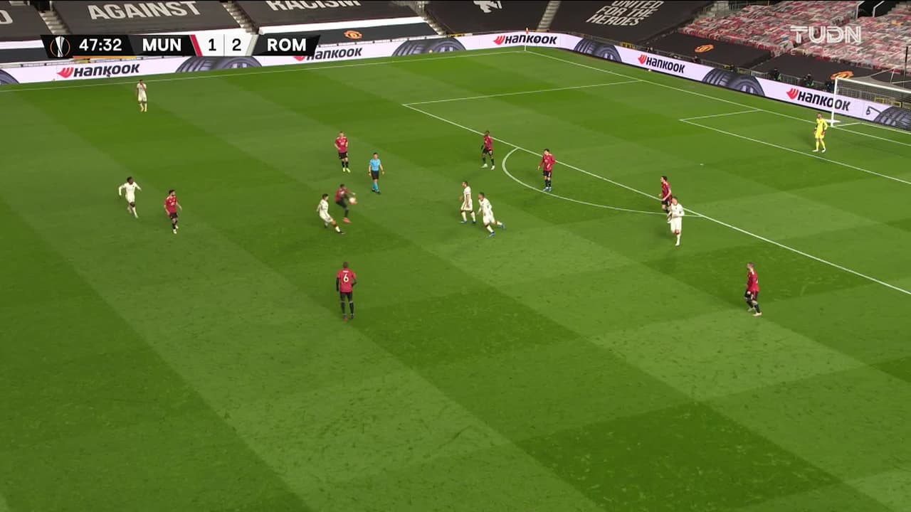 ¡Gol! Manchester United 2| AS Roma 2. Edinson Cavani (Manchester United) Disparo con la derecha desde el centro del área por arriba. Asistencia de Bruno Fernandes tras un contragolpe.