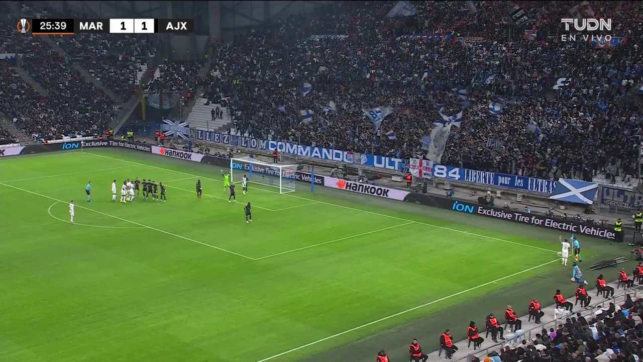 ¡Gol! Marseille 2| Ajax 1. Chancel Mbemba (Marseille) disparo de cabeza desde el centro del área al ángulo superior izquierdo. Asistencia de Jonathan Clauss con un centro al área tras un saque de esquina.