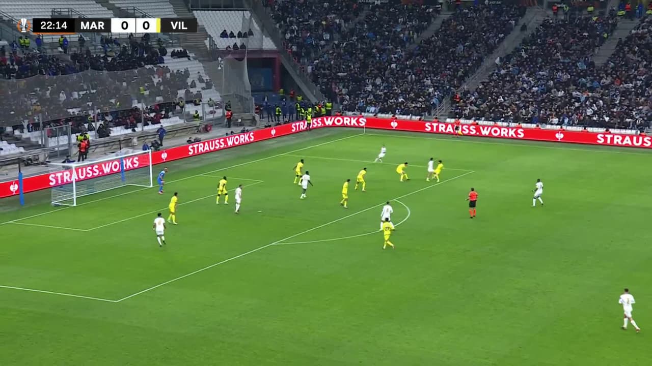 ¡Gol! Marseille 1| Villarreal 0. Jordan Veretout (Marseille) disparo de cabeza desde muy cerca.