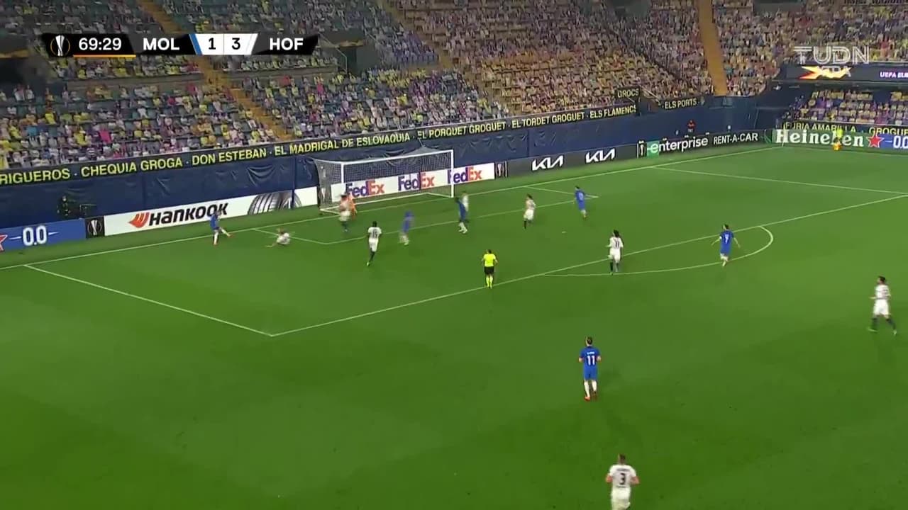 ¡Gol! Molde 2| TSG 1899 Hoffenheim 3. Eirik Ulland Andersen (Molde) disparo de cabeza desde el centro del área disparo rastrero| junto al palo izquierdo. Asistencia de Marcus Holmgren Pedersen con un centro al área.