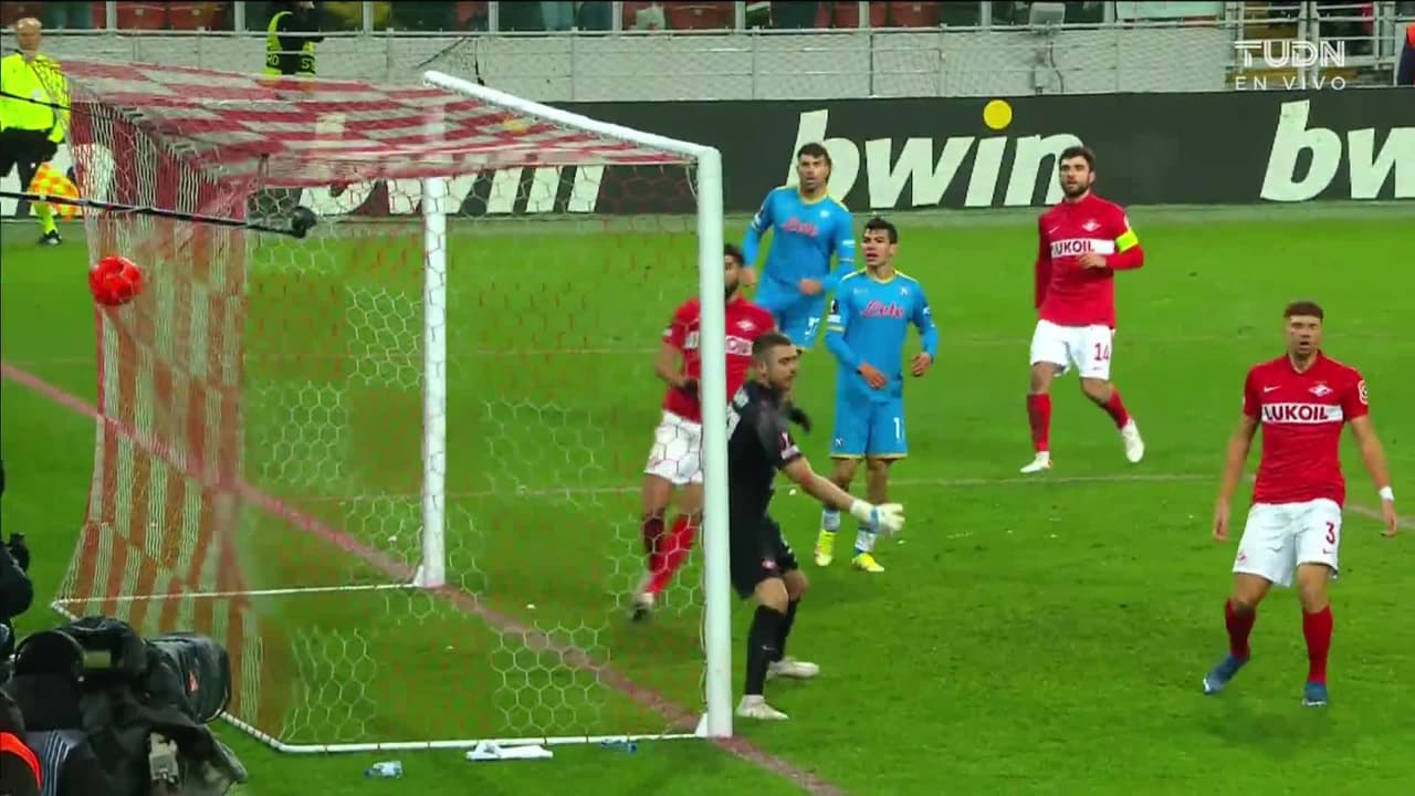 ¡Gol! Spartak Moscow 2| Napoli 1. Eljif Elmas (Napoli) disparo de cabeza a quemarropa desde el lado izquierdo al ángulo superior izquierdo. Asistencia de Andrea Petagna.