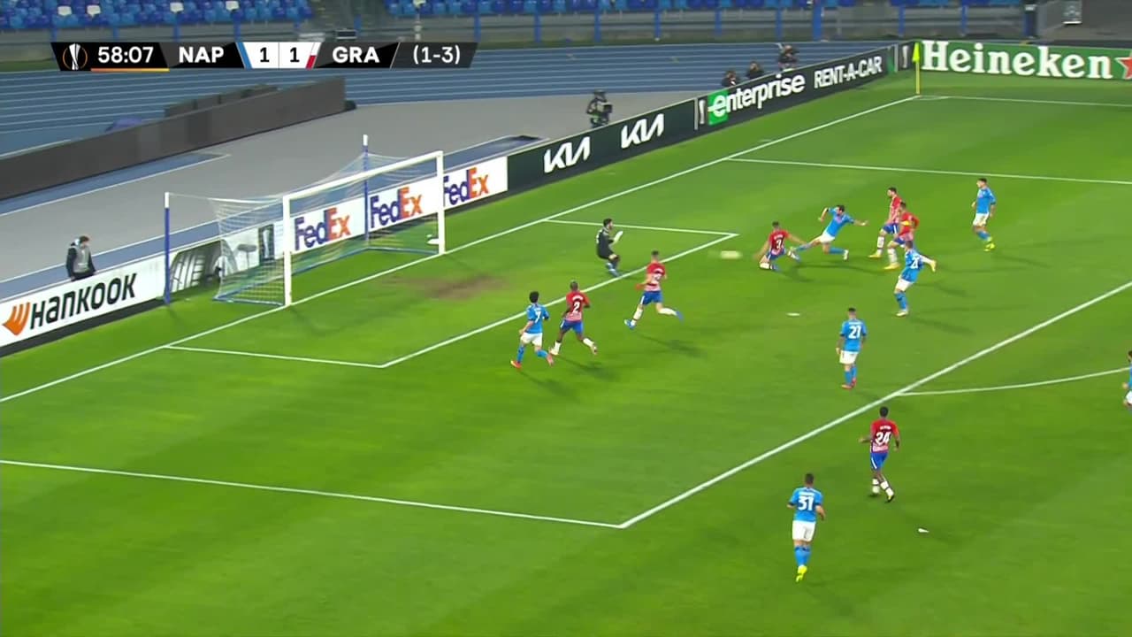 ¡Gol! Napoli 2| Granada CF 1. Fabián Ruiz (Napoli) zurdazo desde el centro del área.