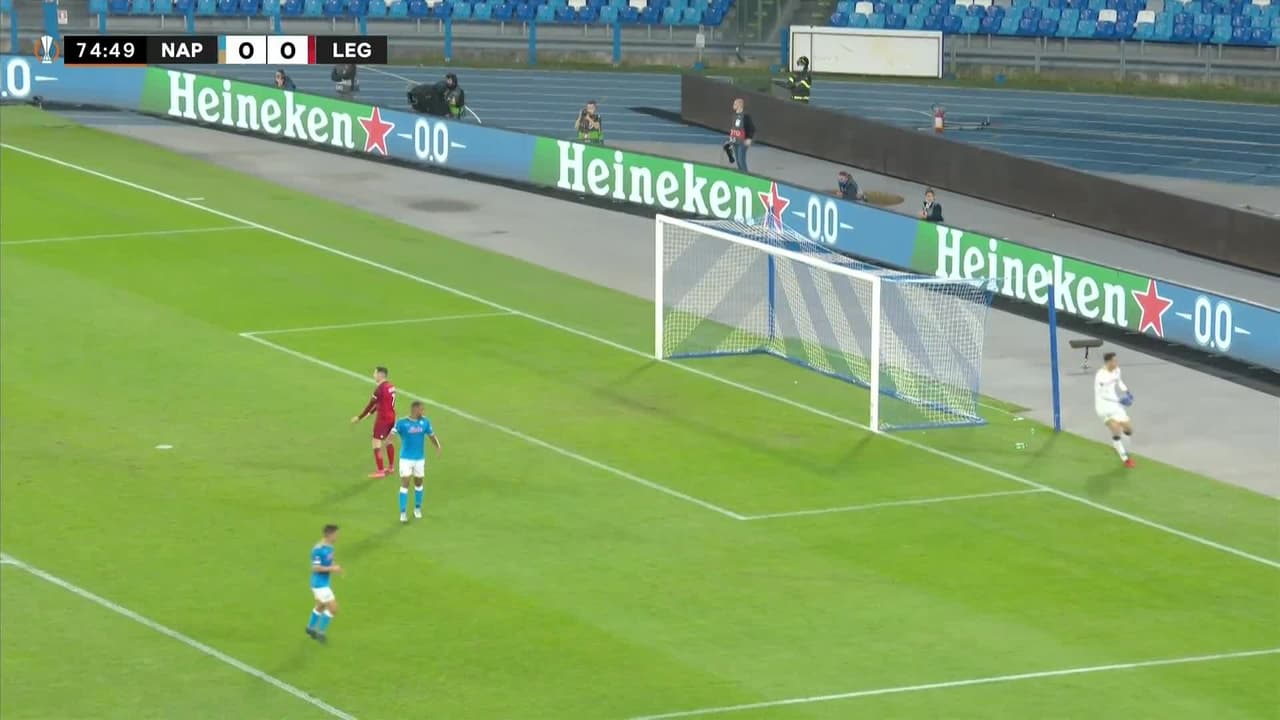 ¡Gol! Napoli 1| Legia Warsaw 0. Lorenzo Insigne (Napoli) Disparo con la derecha desde el centro del área.