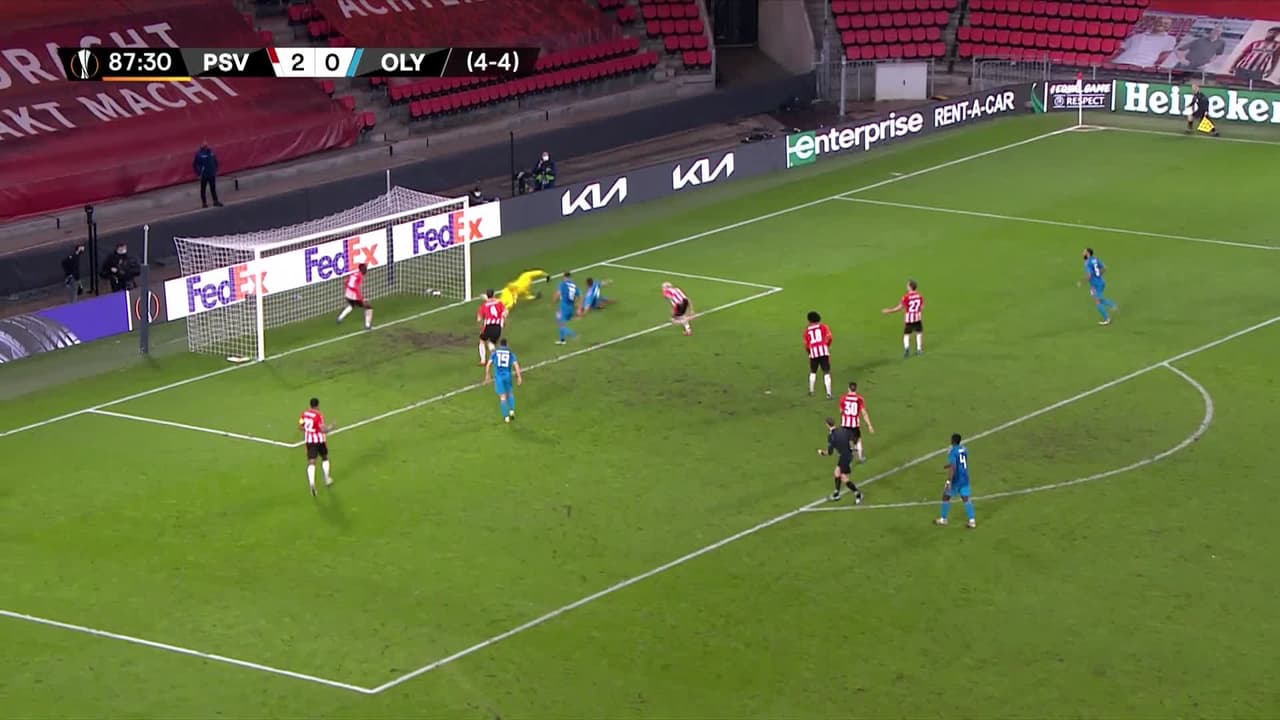¡Gol! PSV Eindhoven 2| Olympiakos 1. Ahmed Hassan Mahgoub (Olympiakos) Disparo con la derecha a quemarropa desde el lado derecho.
