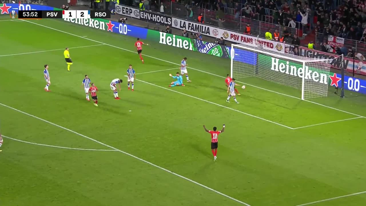 ¡Gol! PSV Eindhoven 2| Real Sociedad 2. Cody Gakpo (PSV Eindhoven) zurdazo desde el centro del área.
