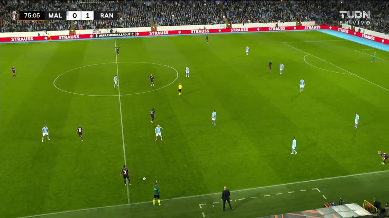 ¡Gol! Malmö FF 0| Rangers 2. Ross McCausland (Rangers) zurdazo desde fuera del área.