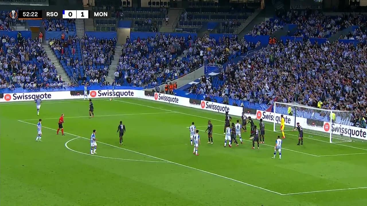 ¡Gooooool! Real Sociedad 1| AS Monaco 1. Mikel Merino (Real Sociedad) remate de cabeza desde el centro del área tras un saque de esquina.