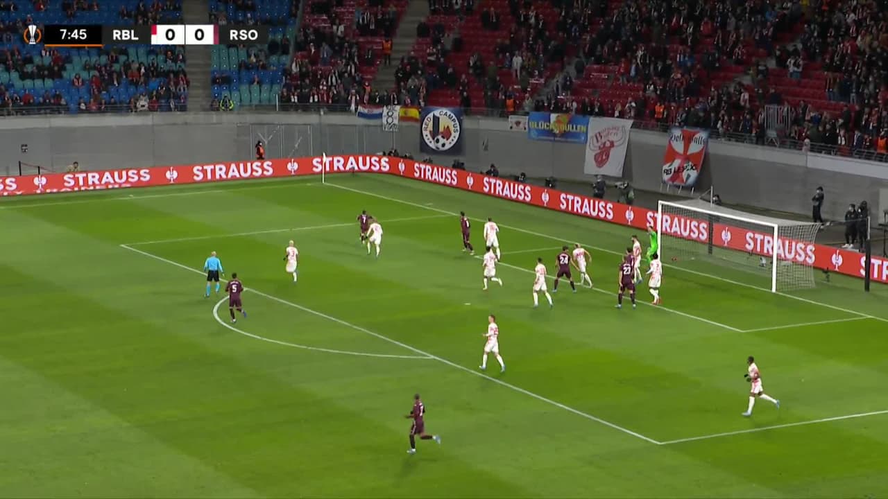 ¡Gol! RB Leipzig 0| Real Sociedad 1. Robin Le Normand (Real Sociedad) Disparo con la derecha desde el centro del área tras un saque de esquina.