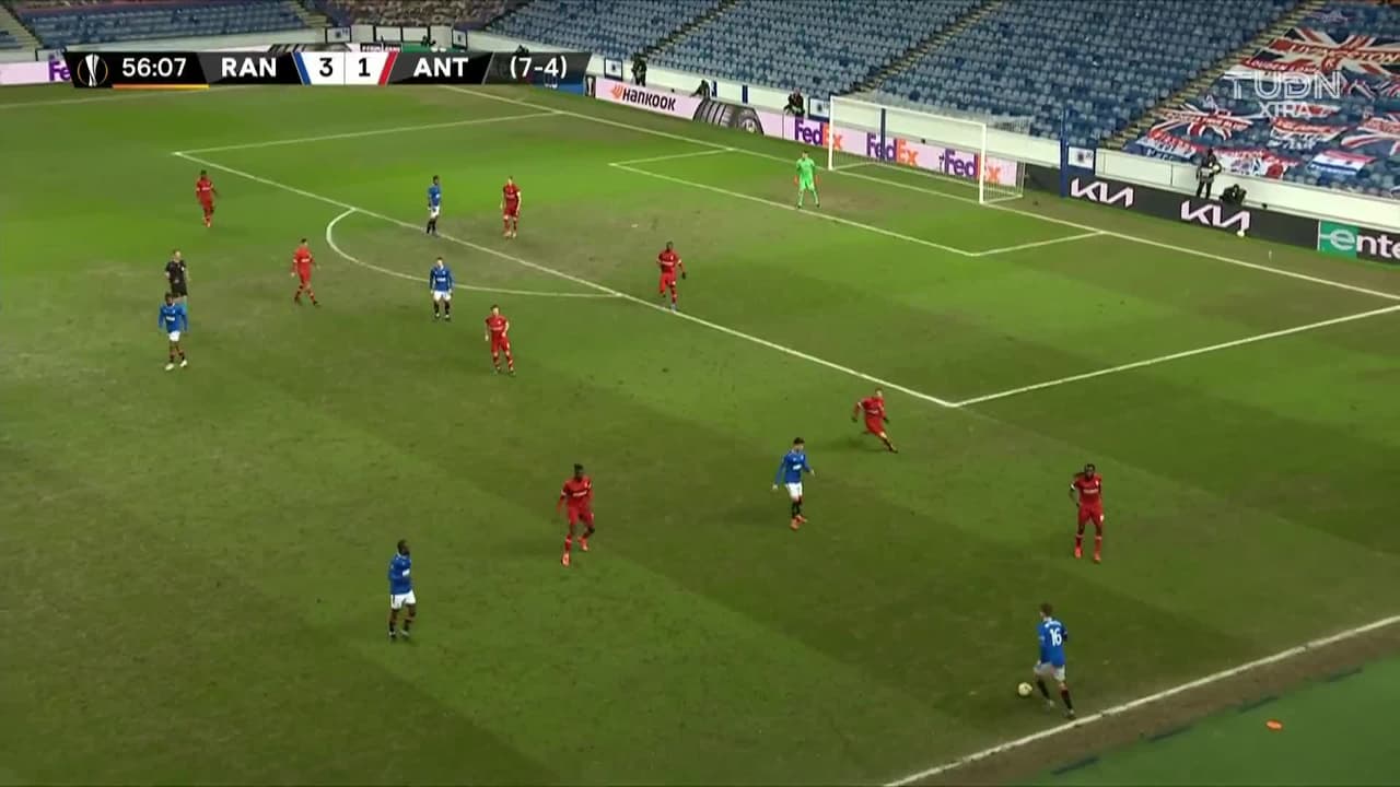 ¡Gol! Rangers 3| Royal Antwerp 2. Didier Lamkel Ze (Royal Antwerp) Disparo con la derecha a quemarropa desde el lado derecho al centro de la portería. Asistencia de Lior Refaelov.