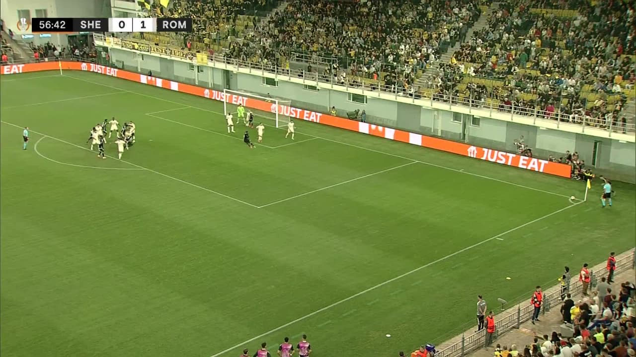 ¡Gol! Sheriff Tiraspol 1| AS Roma 1. Cristian Tovar (Sheriff Tiraspol) Disparo con la derecha desde el centro del área tras un saque de esquina.