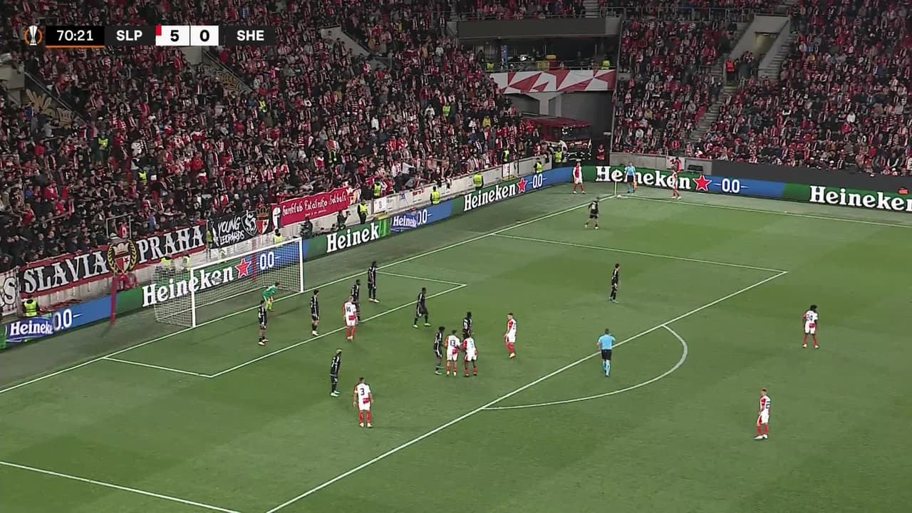 ¡Gol! Slavia Prague 6| Sheriff Tiraspol 0. Mojmír Chytil (Slavia Prague) Disparo con la derecha desde muy cerca por arriba. Asistencia de Tomás Holes tras un saque de esquina.