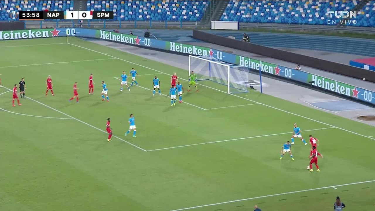 ¡Gooooool! Nápoles 1, Spartak Moscú 1. Quincy Promes (Spartak Moscú) remate con la derecha desde el centro del área tras un saque de esquina.