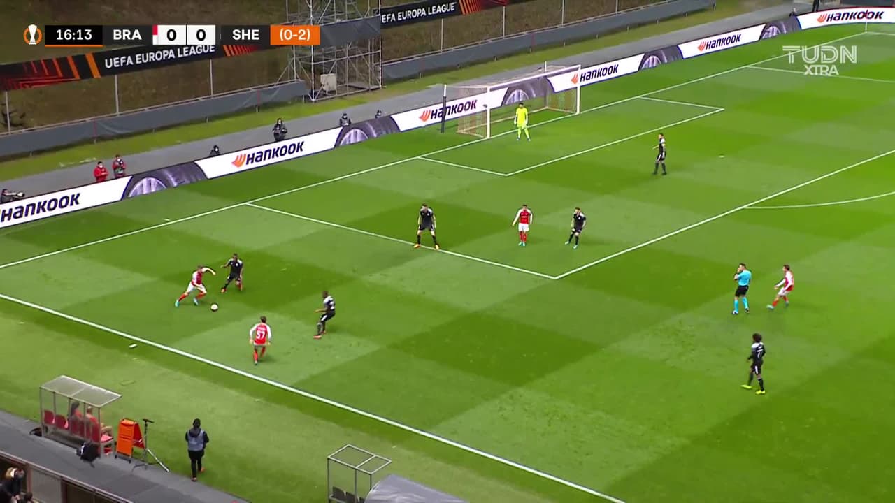 Zurdazo potente para que el SC Braga ponga el 1-0, y el 1-2 en el global ante el Sheriff FC.
