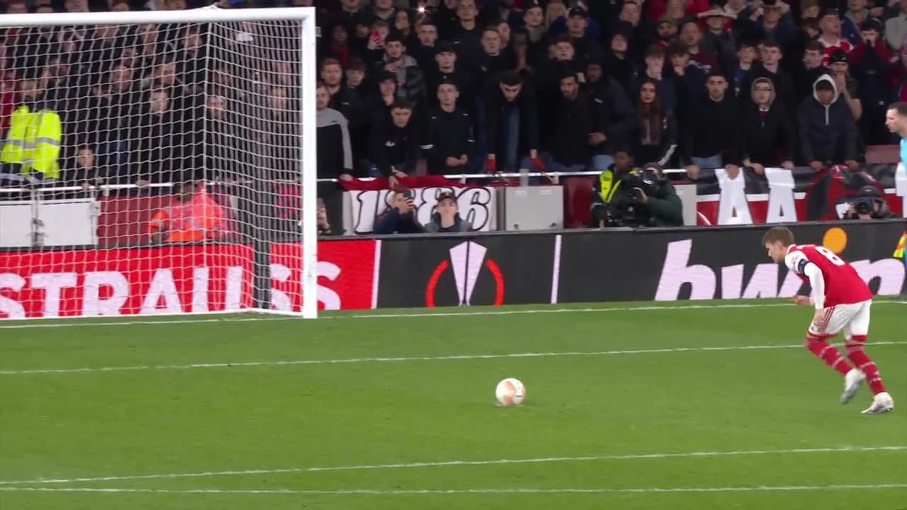 ¡Gol! Arsenal 1(1)| Sporting Lisbon 1(2). Ricardo Esgaio (Sporting Lisbon) convirtió el penalti Disparo con la derecha.