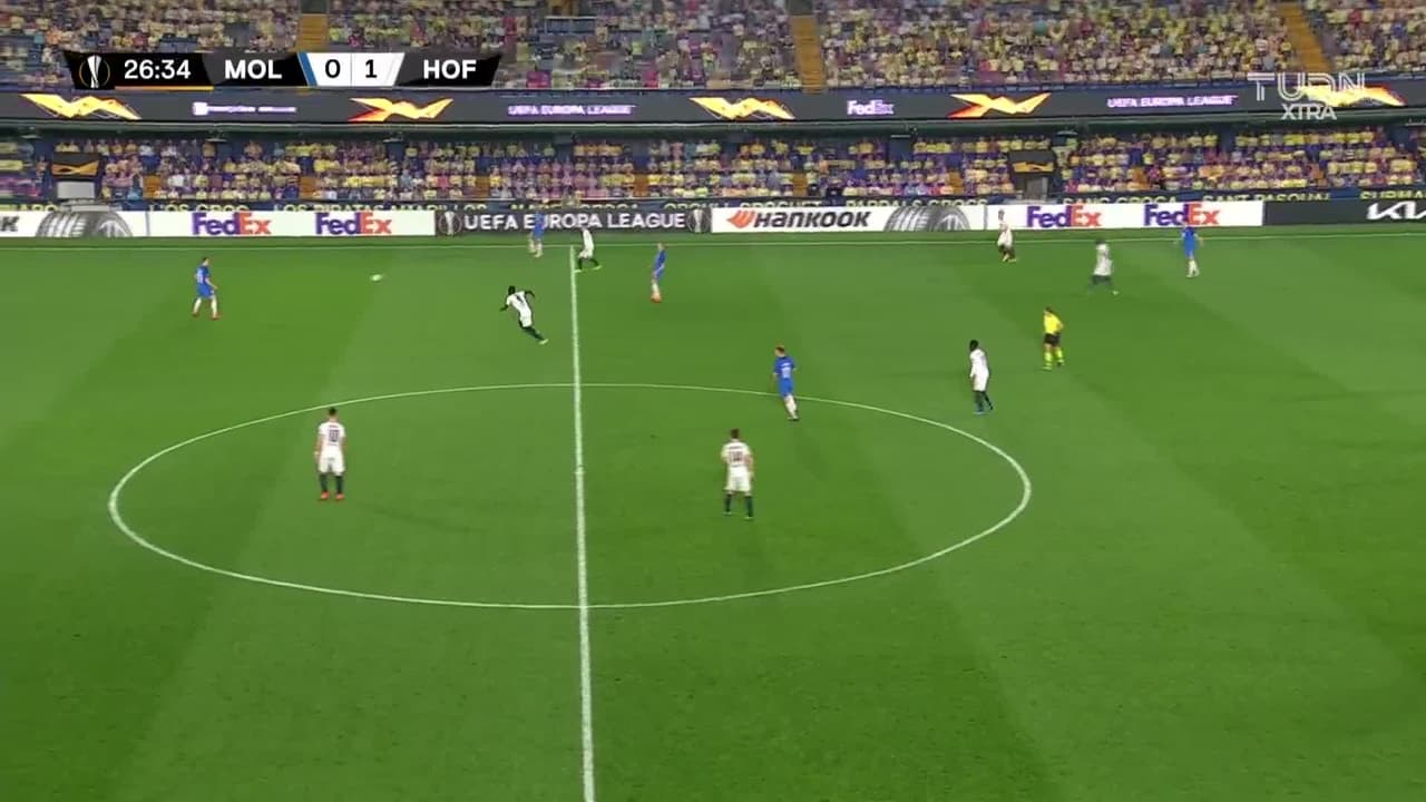 ¡Gol! Molde 0| TSG 1899 Hoffenheim 2. Munas Dabbur (TSG 1899 Hoffenheim) disparo de cabeza desde muy cerca por el lado derecho de la portería. Asistencia de Pavel Kaderábek con un centro al área.
