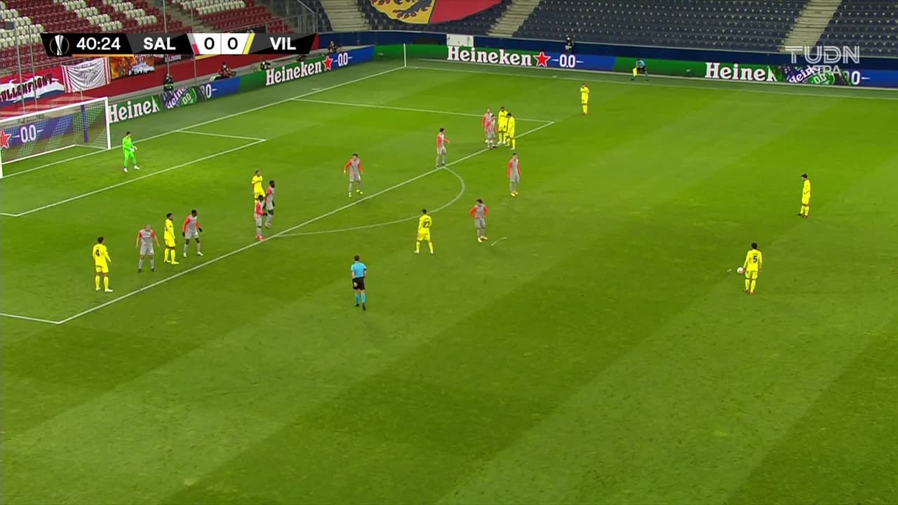 ¡Gol! FC Red Bull Salzburg 0| Villarreal 1. Paco Alcácer (Villarreal) disparo de cabeza desde muy cerca tras el cobro de una falta.