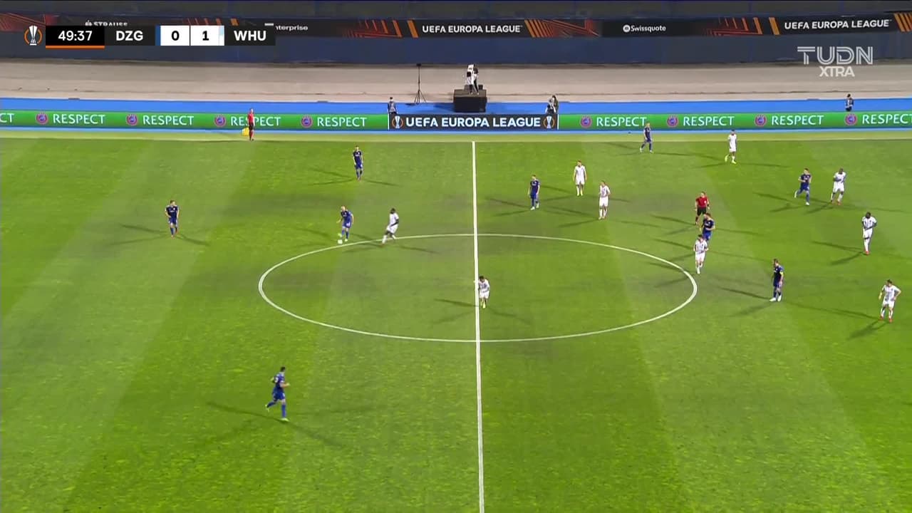 Mala salida del Dinamo Zagreb, Rice robó la pelota y se enfiló al área para definir por debajo de las piernas del portero.