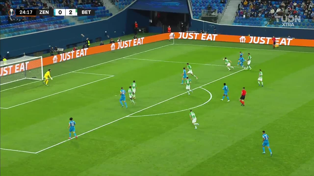 ¡Gol! Zenit St Petersburg 1| Real Betis 2. Artem Dzyuba (Zenit St Petersburg) disparo de cabeza desde el centro del área disparo rastrero| junto al palo izquierdo. Asistencia de Vyacheslav Karavaev con un centro al área.