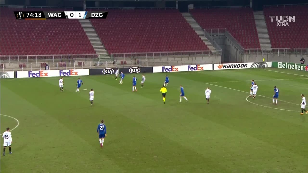 ¡Gol! RZ Pellets WAC 0| Dinamo Zagreb 2. Bruno Petkovic (Dinamo Zagreb) Disparo con la derecha desde el centro del área por el lado derecho de la portería. Asistencia de Arijan Ademi.