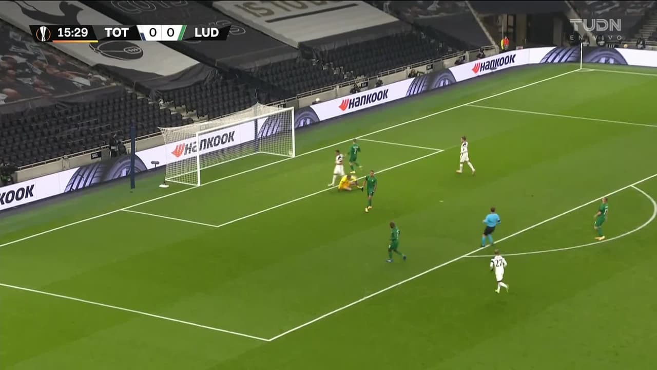 ¡Gol! Tottenham Hotspur 1| Ludogorets Razgrad 0. Carlos Vinicius (Tottenham Hotspur) zurdazo desde el centro del área por el lado derecho de la portería.