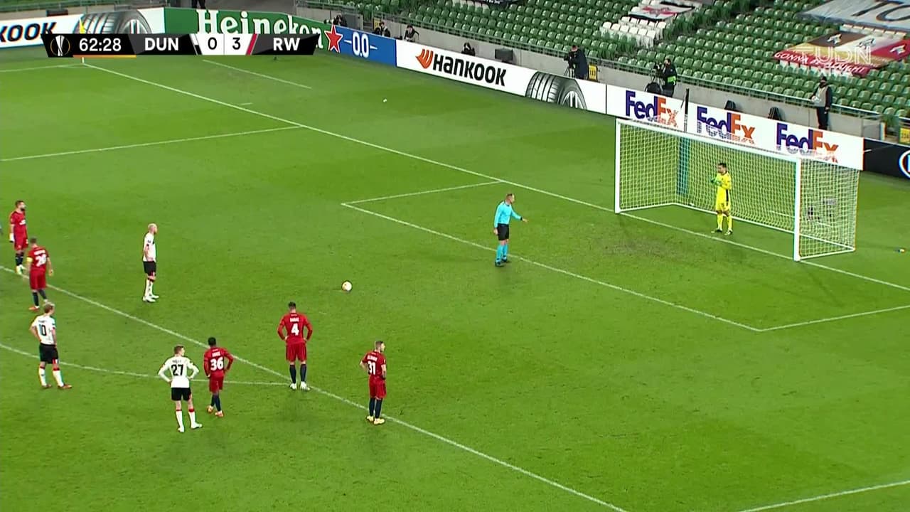 ¡Gol! Dundalk 1| SK Rapid Wien 3. Chris Shields (Dundalk) convirtió el penalti Disparo con la derecha disparo rastrero| junto al palo izquierdo.