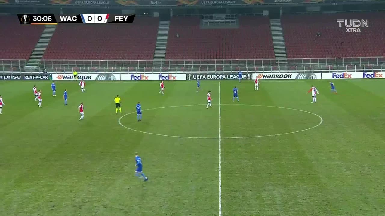 ¡Gol! RZ Pellets WAC 1| Feyenoord 0. Dejan Joveljic (RZ Pellets WAC) disparo de cabeza desde muy cerca disparo rastrero| junto al palo izquierdo. Asistencia de Matthäus Taferner.
