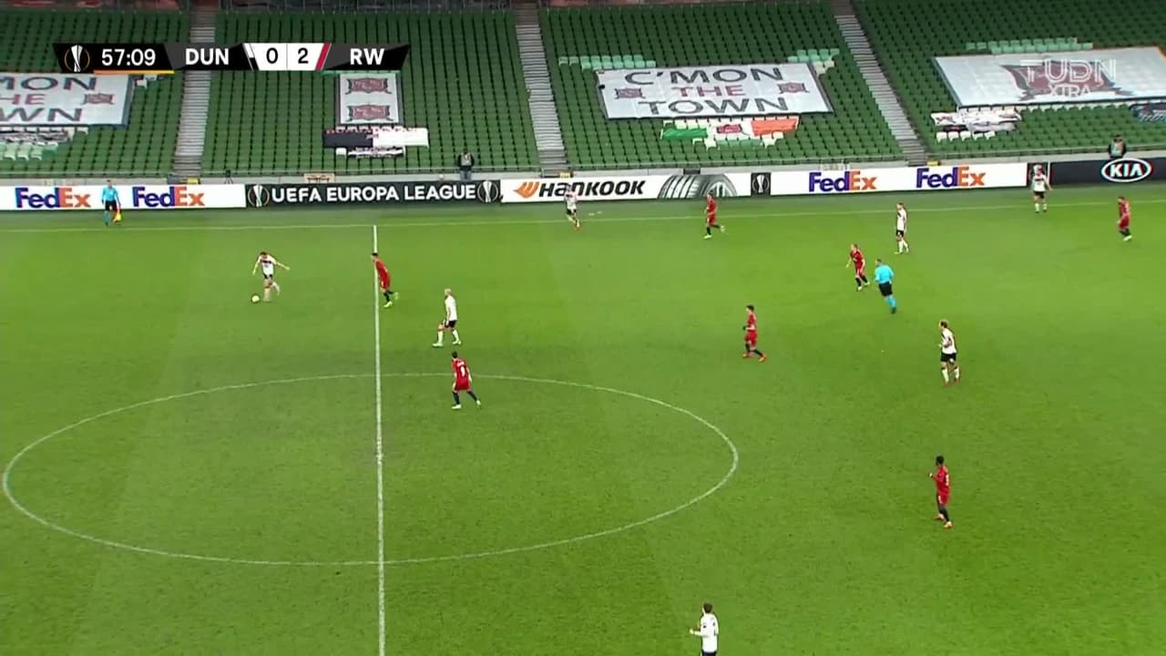 ¡Gol! Dundalk 0| SK Rapid Wien 3. Ercan Kara (SK Rapid Wien) Disparo con la derecha desde fuera del área por arriba. Asistencia de Thorsten Schick pase largo.