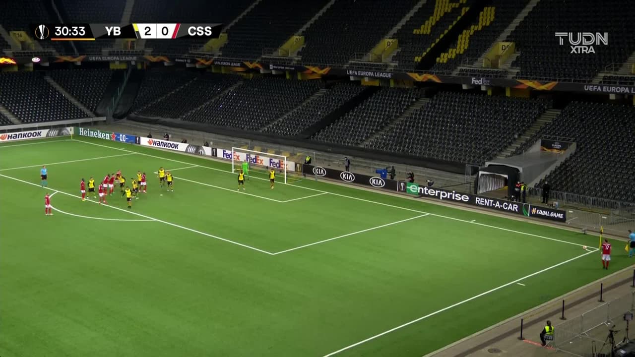 ¡Gol! BSC Young Boys 3| CSKA Sofia 0. Felix Mambimbi (BSC Young Boys) disparo de cabeza desde muy cerca disparo rastrero| junto al palo izquierdo. Asistencia de Christian Fassnacht con un centro al área.