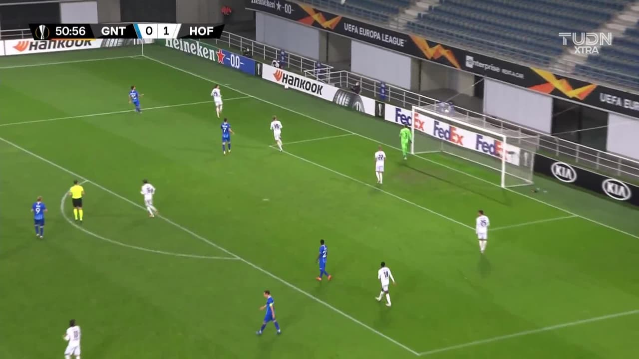 ¡Gol! KAA Gent 0| TSG 1899 Hoffenheim 2. Florian Grillitsch (TSG 1899 Hoffenheim) Disparo con la derecha desde el centro del área disparo rastrero| junto al palo izquierdo. Asistencia de Ihlas Bebou.