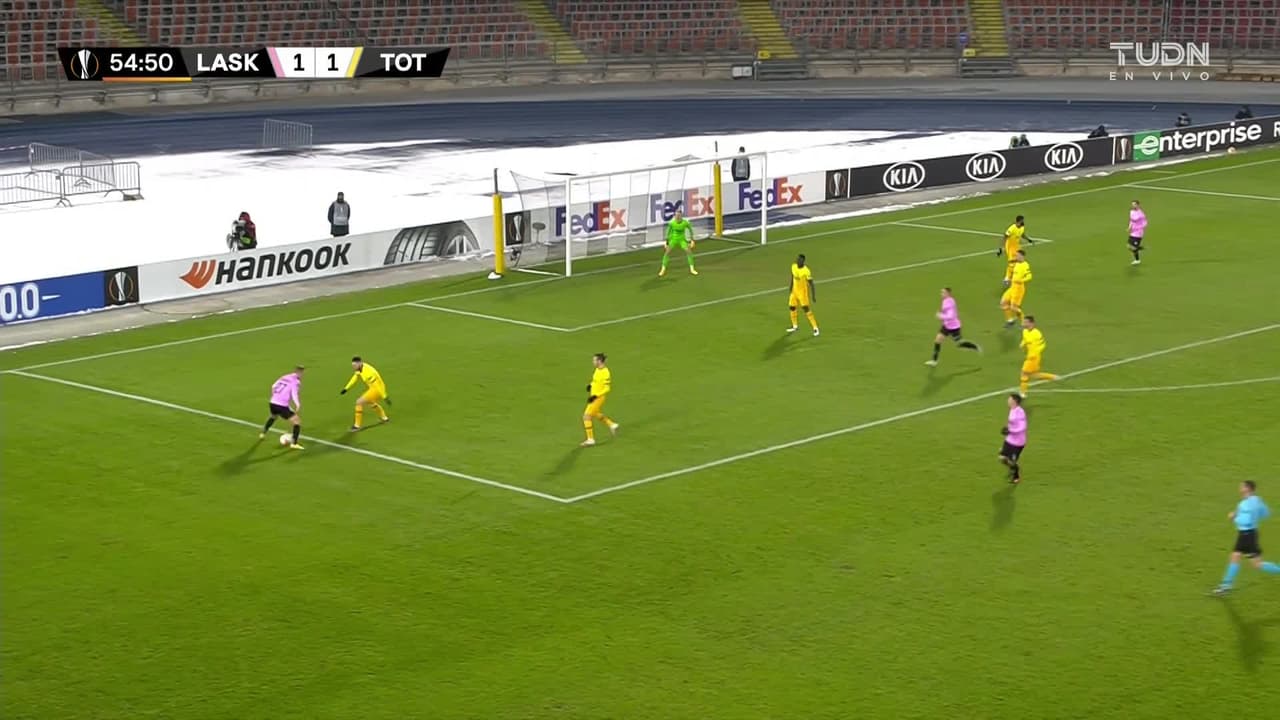 ¡Gol! LASK 1| Tottenham Hotspur 2. Son Heung-Min (Tottenham Hotspur) Disparo con la derecha desde el lado derecho dentro del área disparo rastrero| junto al palo izquierdo. Asistencia de Tanguy Ndombele después de un pase en profundidad tras un contragolpe.