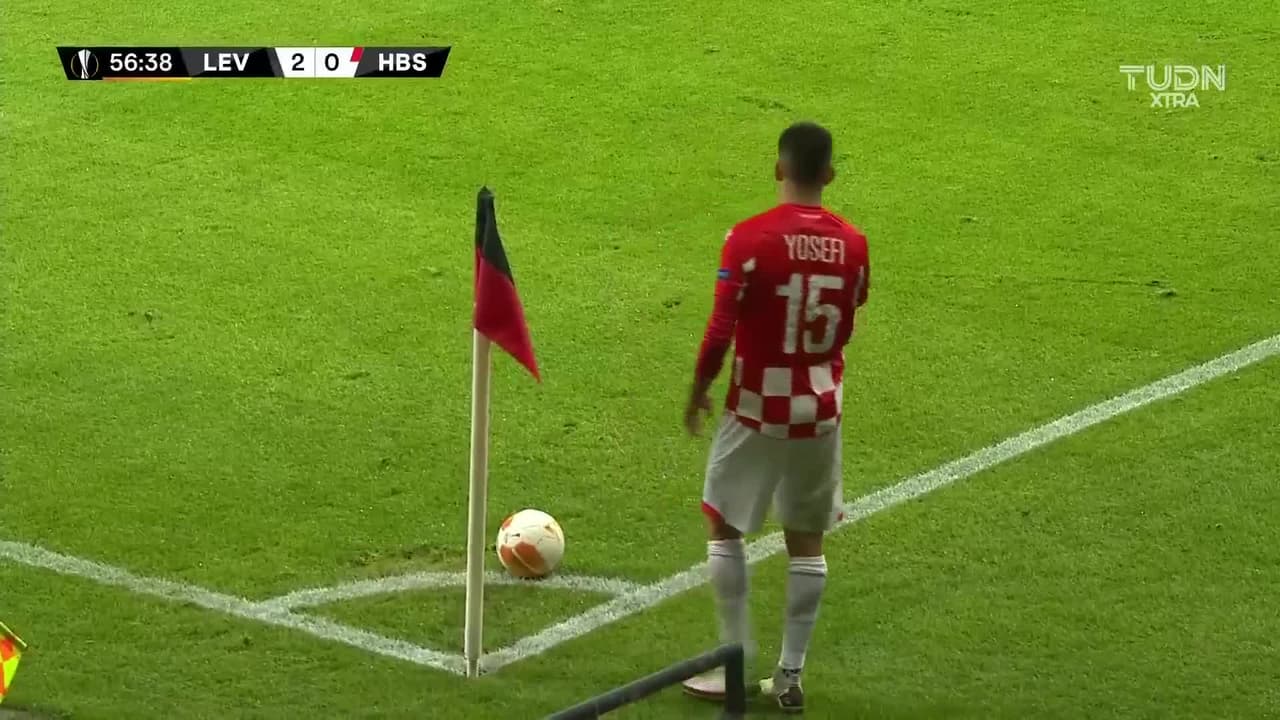 ¡Gol! Bayer 04 Leverkusen 2| Hapoel Be'er Sheva 1. Itamar Shviro (Hapoel Be'er Sheva) Disparo con la derecha desde fuera del área.
