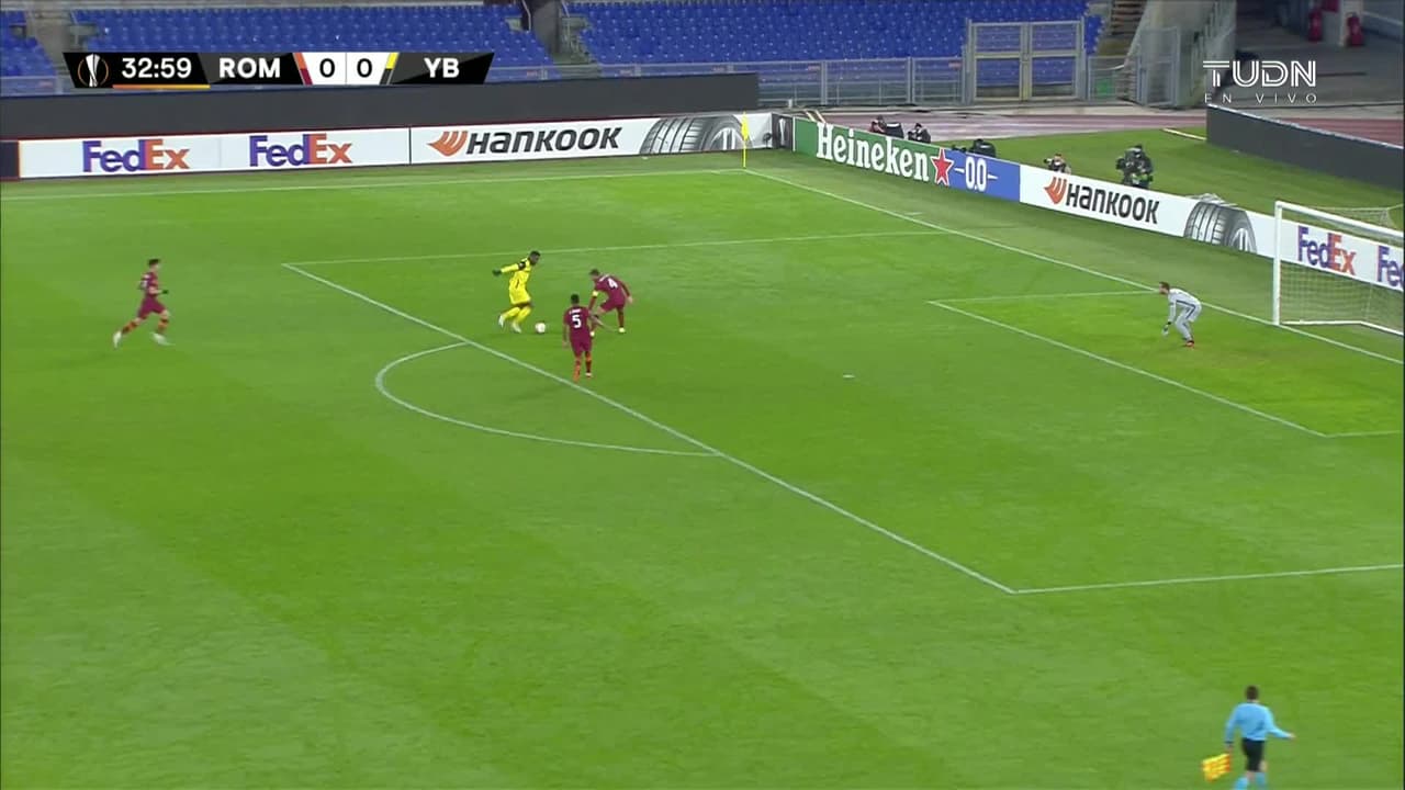 ¡Gol! AS Roma 0| BSC Young Boys 1. Jean-Pierre Nsame (BSC Young Boys) zurdazo sin ángulo desde la izquierda.