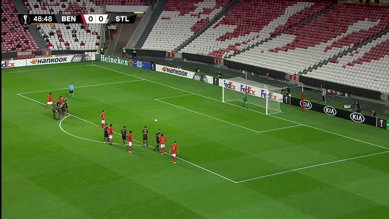 ¡Gol! Benfica 1| Standard Liège 0. Pizzi (Benfica) convirtió el penalti Disparo con la derecha disparo rastrero| junto al palo izquierdo.