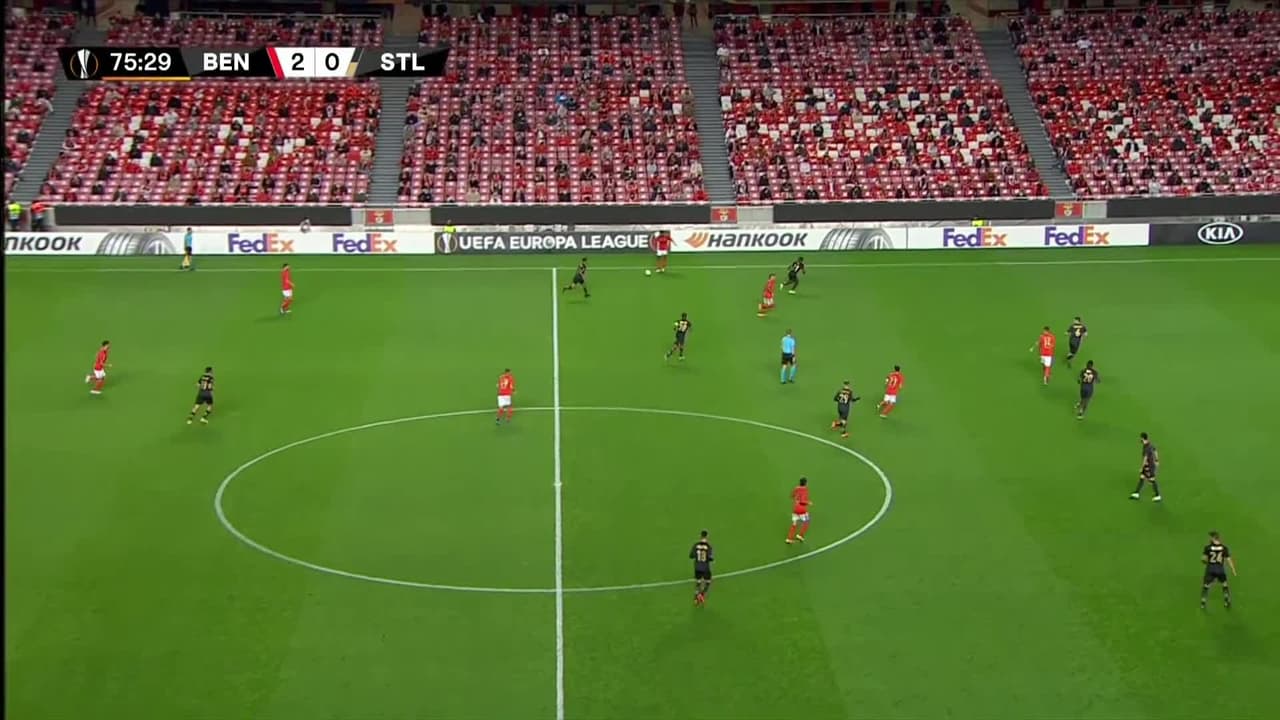 ¡Gol! Benfica 3| Standard Liège 0. Pizzi (Benfica) Disparo con la derecha desde el lado izquierdo dentro del área por arriba. Asistencia de Everton.