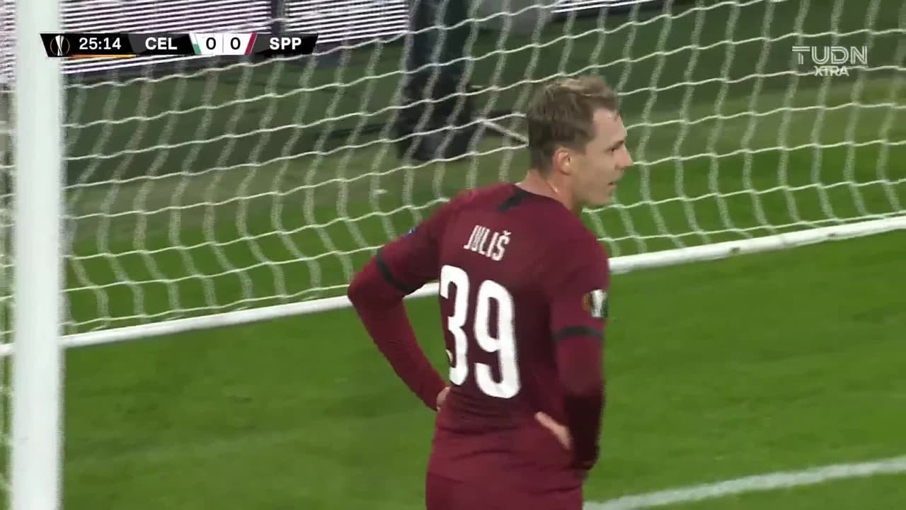 ¡Gol! Celtic 0| Sparta Prague 1. Lukas Julis (Sparta Prague) Disparo con la derecha desde el centro del área tras un saque de esquina.