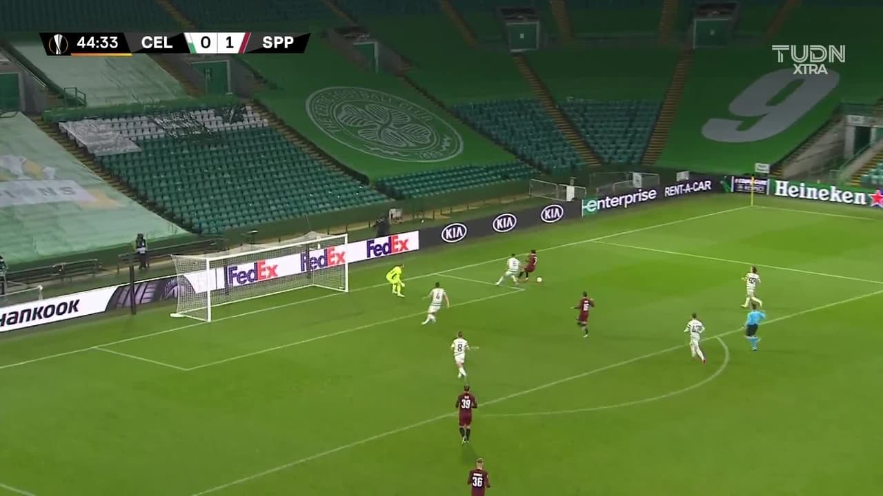 ¡Gol! Celtic 0| Sparta Prague 2. Lukas Julis (Sparta Prague) Disparo con la derecha desde el centro del área.