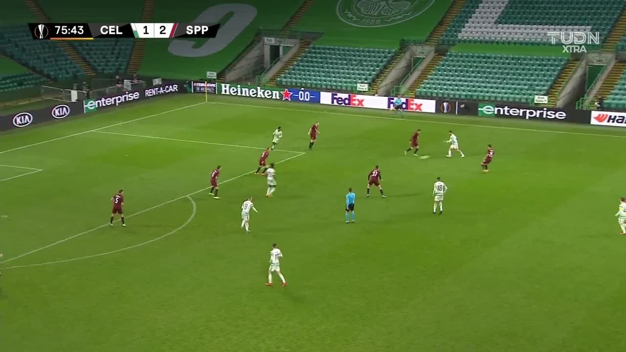 ¡Gol! Celtic 1| Sparta Prague 3. Lukas Julis (Sparta Prague) Disparo con la derecha desde muy cerca al centro de la portería. Asistencia de David Moberg Karlsson.
