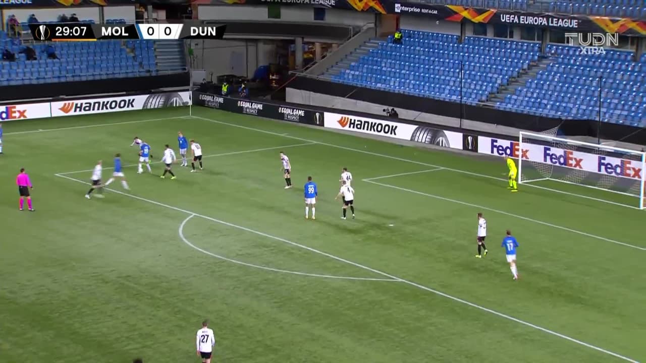 ¡Gol! Molde 1| Dundalk 0. Magnus Wolff Eikrem (Molde) disparo de cabeza desde muy cerca por el lado derecho de la portería. Asistencia de Birk Risa con un centro al área.