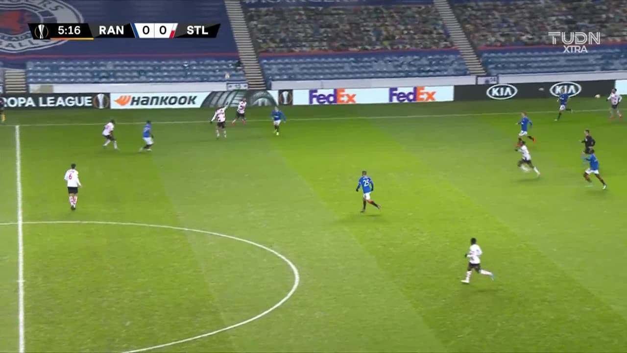 ¡Gol! Rangers 0| Standard Liège 1. Maxime Lestienne (Standard Liège) Disparo con la derecha desde muy cerca disparo rastrero| junto al palo izquierdo. Asistencia de Duje Cop con un centro al área.
