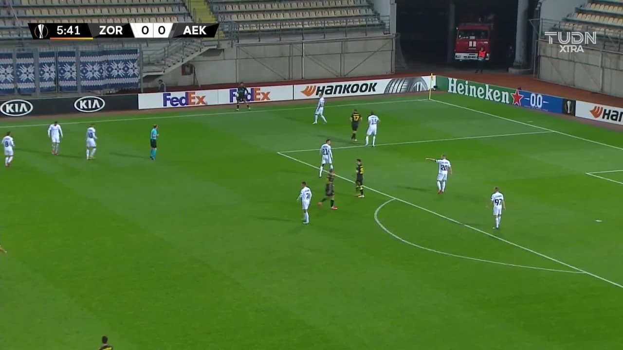 ¡Gol! Zorya Luhansk 0| AEK Athens 1. Muamer Tankovic (AEK Athens) zurdazo desde el centro del área por arriba.