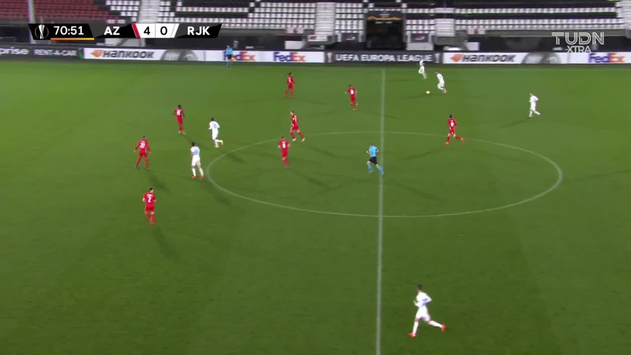 ¡Gol! AZ 4| HNK Rijeka 1. Sandro Kulenovic (HNK Rijeka) Disparo con la derecha desde el centro del área por el centro del arco. Asistencia de Stjepan Loncar después de un pase en profundidad.