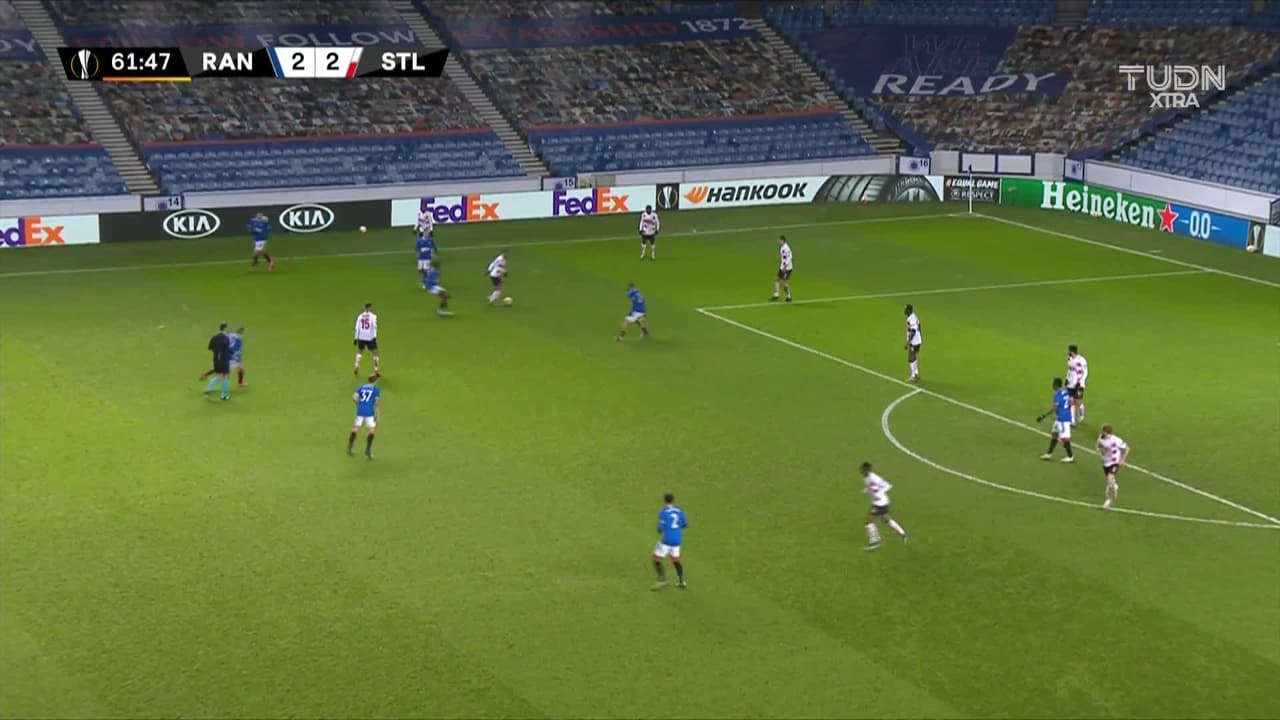 ¡Gol! Rangers 3| Standard Liège 2. Scott Arfield (Rangers) Disparo con la derecha desde el centro del área por el lado derecho de la portería. Asistencia de Ryan Kent.